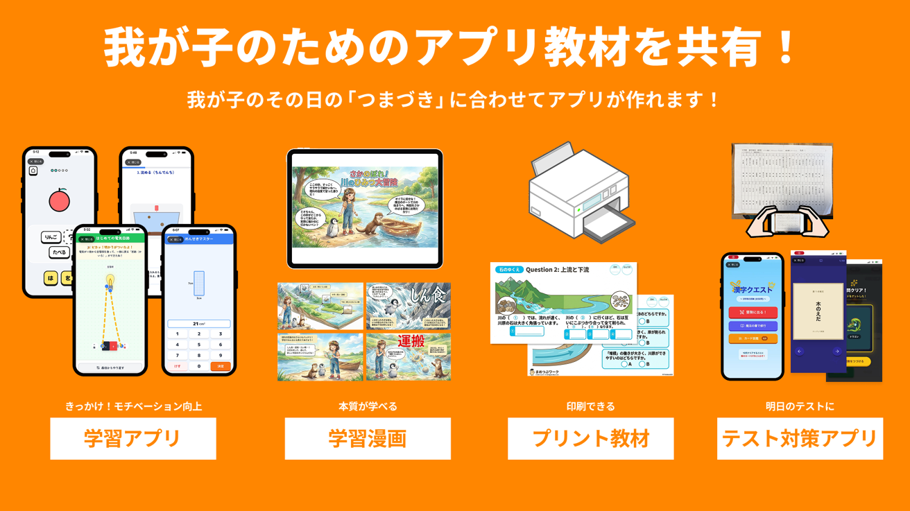 我が子の「つまづき」に合わせて、その場でアプリを生成!