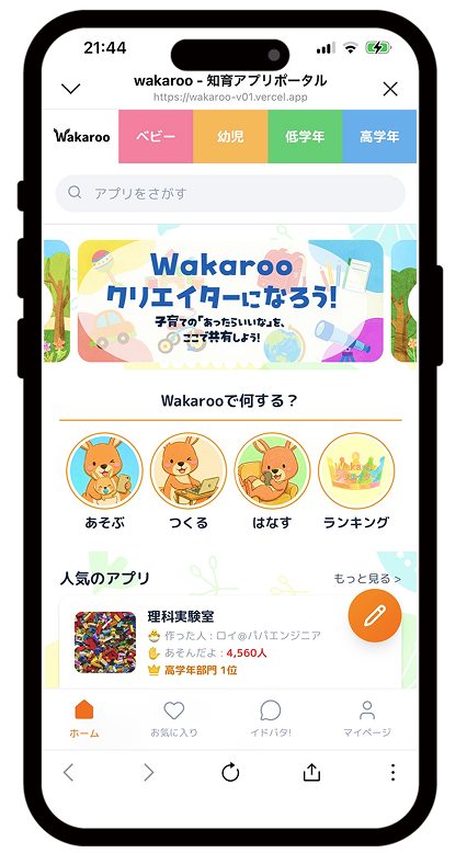 作ったアプリを投稿し、他のユーザーのアプリで学ぶことができます。